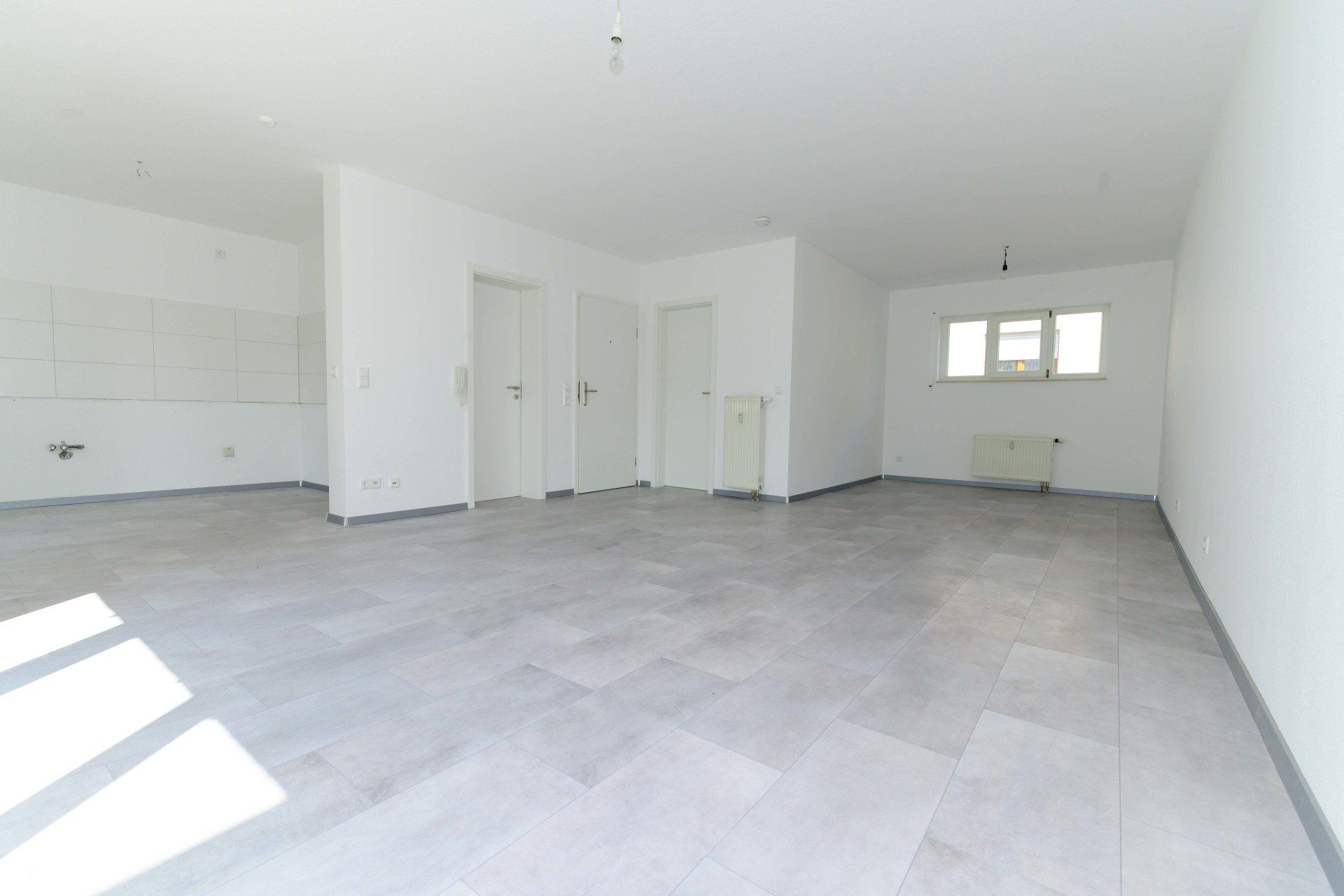 Die offene Küche kann ganz nach Belieben als einfache Zeile, als Winkelküche oder mit einem Tresen als Essplatz gestaltet werden, auch von der Küche ist ein Zugang zur Terrasse möglich.
